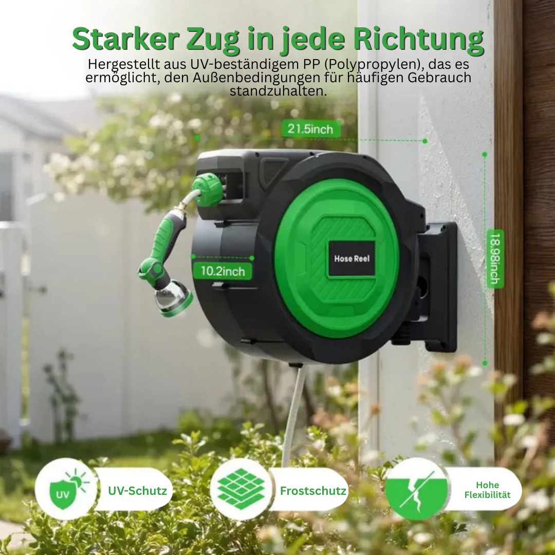 Kompakt & Ordentlich: Aufrollbarer Schlauch hält den Garten aufgeräumt.