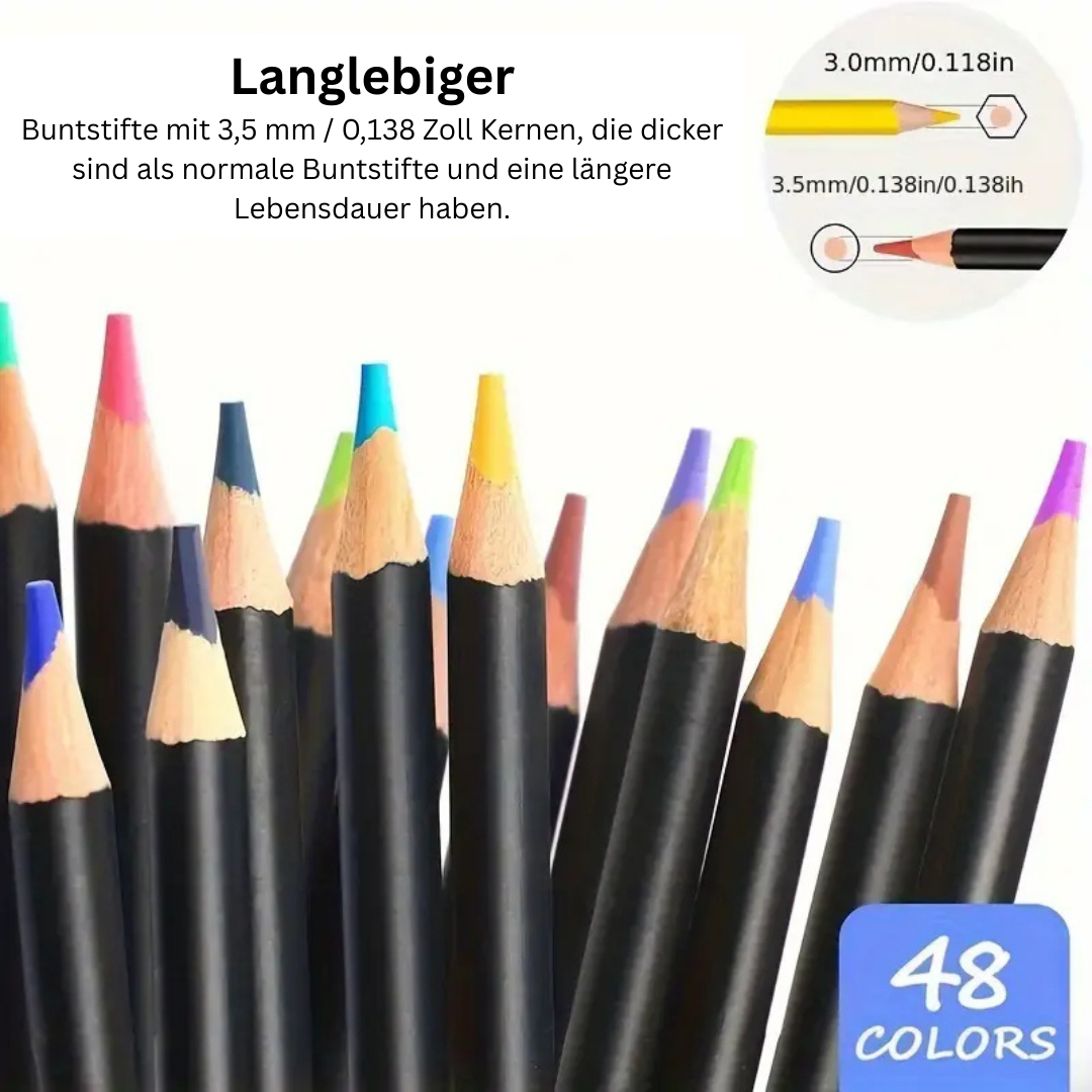 Kraviss™ bringt professionelle Qualität in Ihre Kunstprojekte mit seiner wasserlöslichen Eigenschaft, die es Ihnen ermöglicht, mühelos von Farbstift zu Aquarell überzugehen. Ob für detaillierte Zeichnungen oder wunderschöne Gemälde – dieses Set gibt Ihnen die Flexibilität, Ihre Kreativität voll auszuschöpfen.