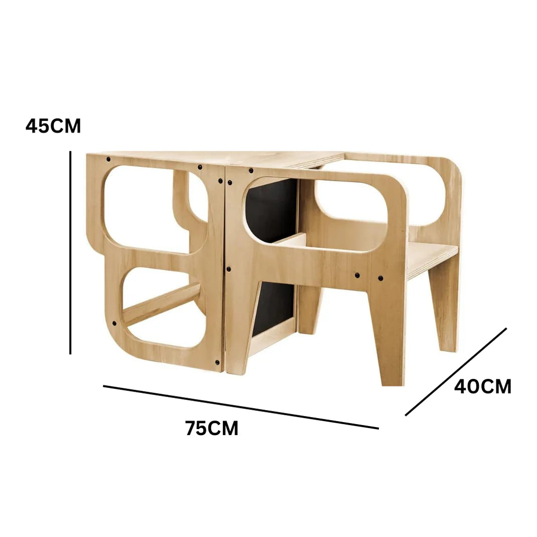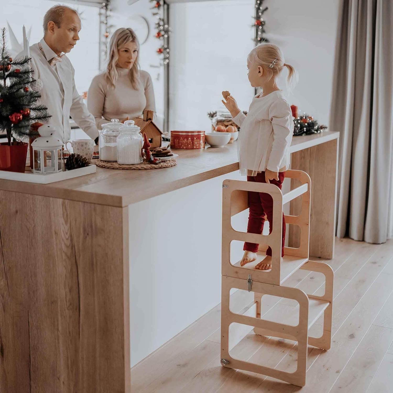 Der Trauvia™ 3-in-1 Lernturm unterstützt Kinder beim Mithelfen in der Küche, beim Basteln oder Spielen. Aus umweltfreundlichem Strandholz gefertigt, kombiniert er Funktionalität mit Stabilität und einer integrierten Tafel für kreative Momente.