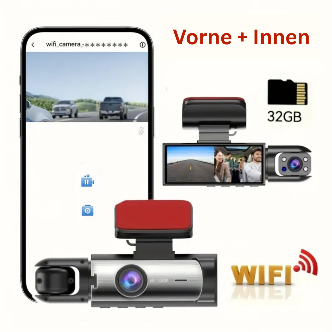 Vorlen™ | WiFi Dashcam – 1080P HD, Nachtsicht & 32GB Karte
